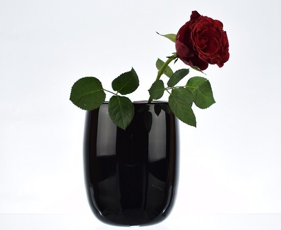 Handmade Mouth Blown Black Glass Vase For Flowers 15.5 cm