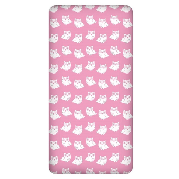 Fitted Sheet Fit Moses Basket / Pram 90×40 cm Owls Pink