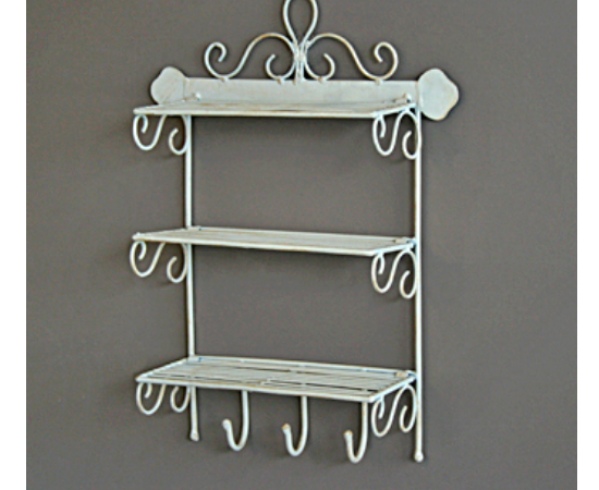 Triple Wall Shelf With 3 Hooks Ivory H:45 cm by Originals