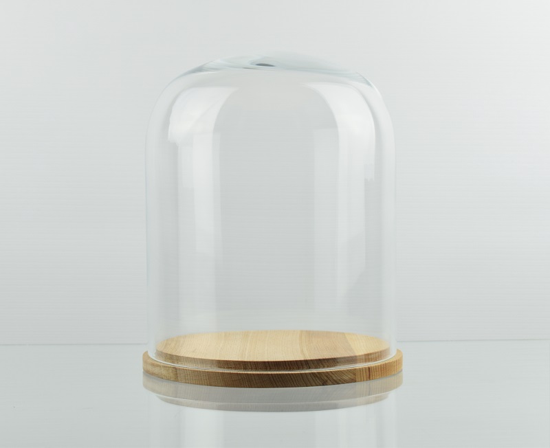 Medium Glass Dome Display Cloche With Natural Base 22 cm x 18 cm