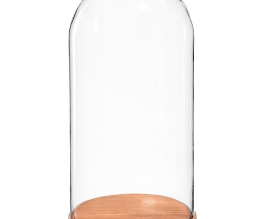 Glass Display Dome With Beech Wood Vintage Base Natural H:17.5 cm x D:10.5 cm