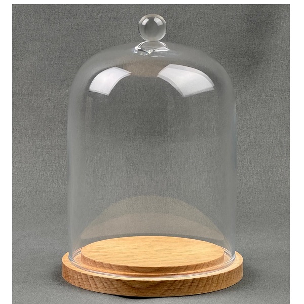 Handmade Clear Circular Glass Display Cloche Bell Dome With Natural Base 60×25 cm