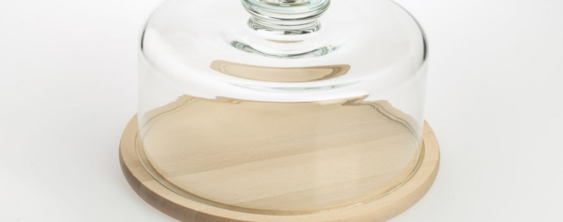 Medium Cheese Or Cake Dome 25 cm x 14.5 cm With Wooden Serving Cutting Board