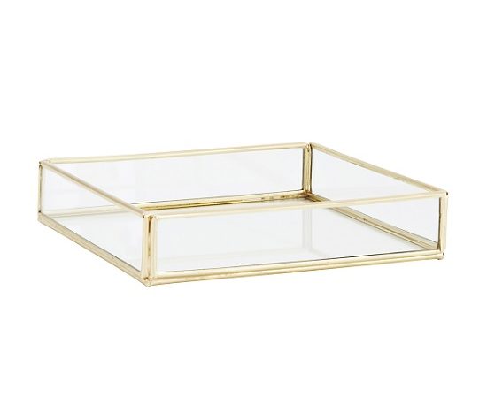 Medium Quadratic Gold Glass Tray by Madam Stoltz