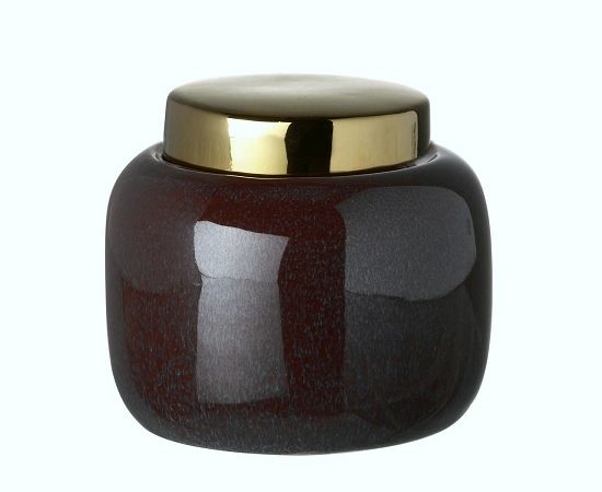 Purple Ceramic Storage Jar With A Gold Lid Height 12 cm by Parlane