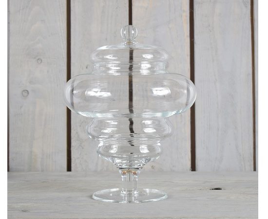 Handmade Beautiful Clear Glass Jar With a Unique Shape And Lid Tall 25 cm