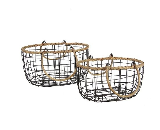 Set of 2 Oval Wire Basket With Handles And Rope Trim by Gisela Graham