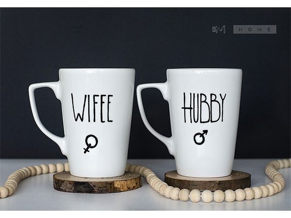 Set of 2 Hand Painted Mugs ‘Wifee & Hubby’