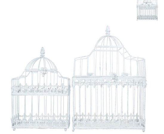Set Of 2 White Decorative Style Birdcage Plants Or Candles Holder by Originals