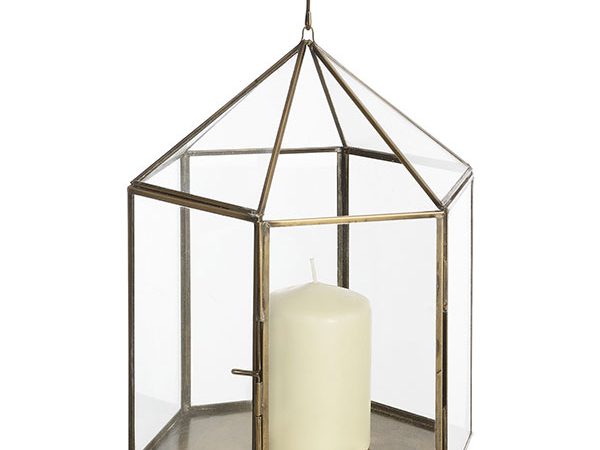 Brass Glass Lantern Norr Witch Inclined Glass Top by Ib Laursen 30.5 cm