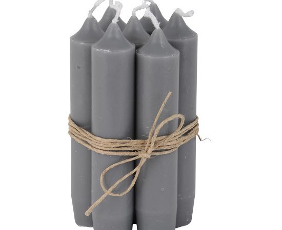 Set of 6 Short Dinner Linen Grey Rustic Candles by Ib Laursen