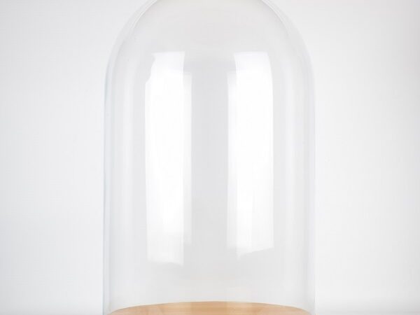 Hand-Blown Glass Dome Cloche With Natural Base H:29 cm x 25 cm