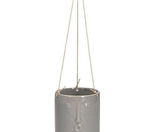 Grey Ceramic Hanging Flower Pot With Face Imprint and Rope by Gisela Graham
