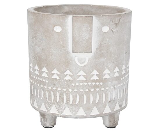 Grey and White Concrete Medium Flower Pot With Face Imprint by Gisela Graham