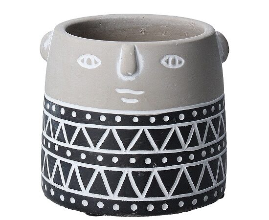 Grey and Black Concrete Small Flower Pot With Face Imprint by Gisela Graham