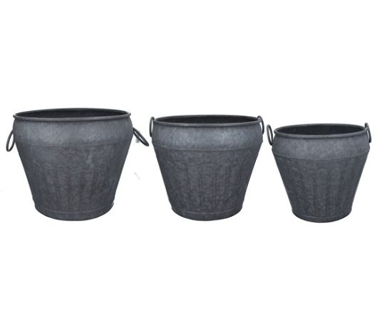 Set of 3 Galvanised Metal Urn Bucket with Handles by Gisela Graham