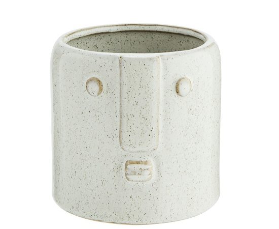 Small White Stoneware Flower Pot With Face Imprint by Madam Stoltz