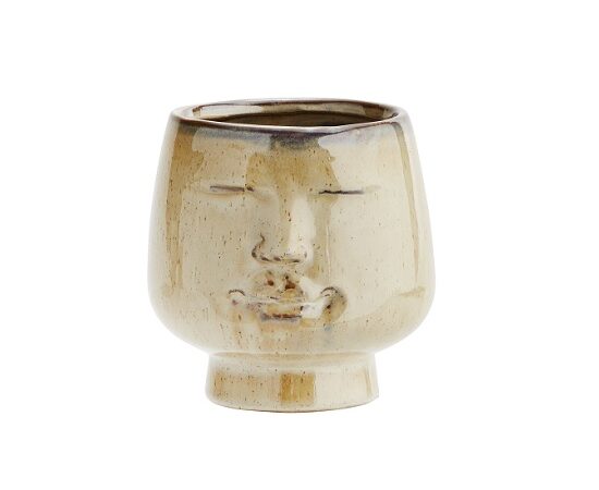 Brown Small Stoneware Flower Pot With Face Imprint by Madam Stoltz
