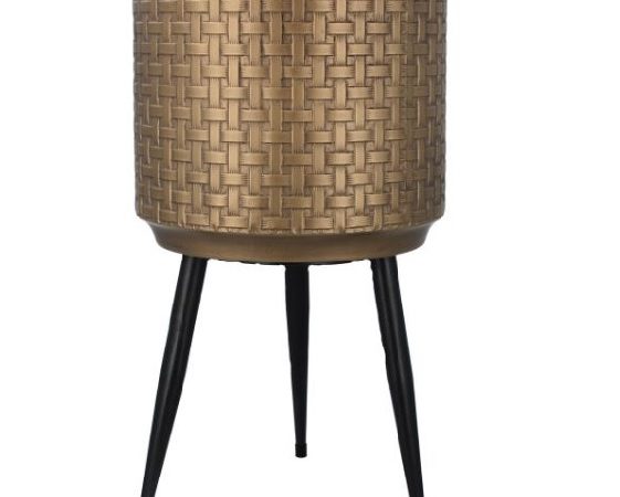 Medium Gold Iron Basketweave Pot With Stand by Gisela Graham