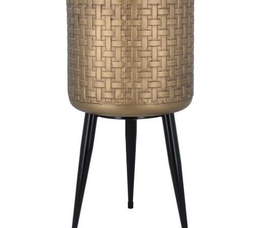 Large Gold Iron Basketweave Pot With Stand by Gisela Graham