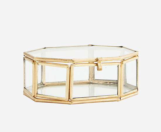 Octagonal Brass Glass Storage Box With Lid by Madam Stoltz