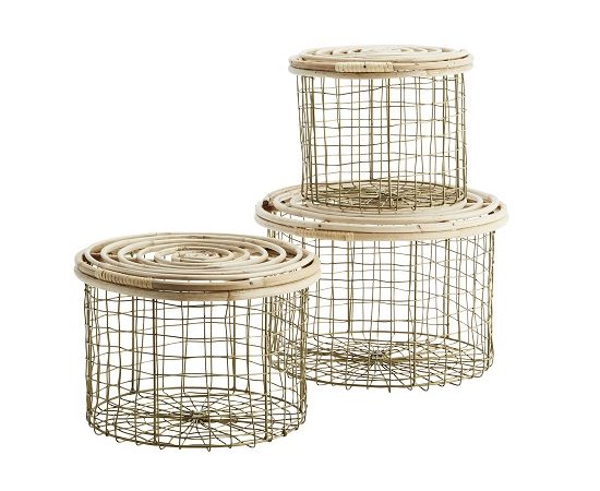 Round Baskets With Bamboo Lids Set of 3 by Madam Stoltz