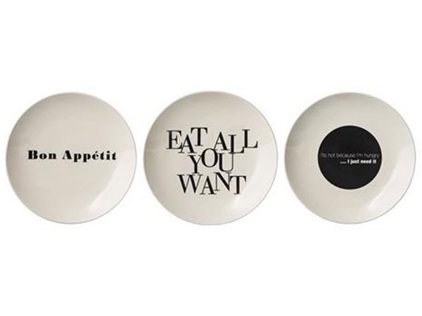 Cathrine Plates 'Quote' set of 3 White & Black by Bloomingville
