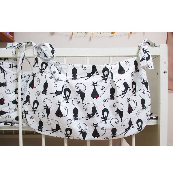 Made from 100% cotton, it has one pocket and is perfect for storing all your baby’s essentials, leaving you with a clutter-free cot. There are 2 cords to tie the storage bag onto your baby’s cot. You can also hang it on a baby’s stroller as well as on the back of the headrest in the car.