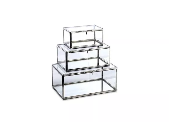 These elegant Sugali Boxes are sophisticated and stylish. The simple, clean lines of the silver metal is hand soldered around glass and finished with a mirror base. They are perfect for storing jewellery and collectables.Ā These elegant silver and glass boxes make exquisite jewellery boxes and stylish small storage or use them to display collectables.