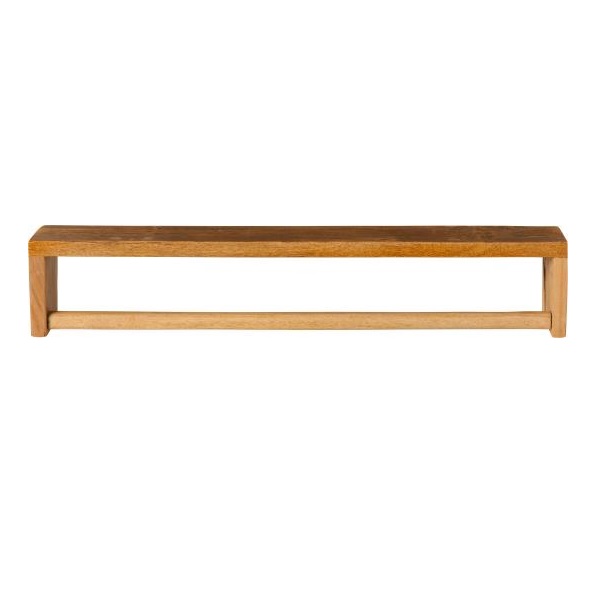 This versatile wooden wall shelf offers a minimalist, natural finish that blends seamlessly into any room décor. Designed with a clean, rectangular frame and a front edge rail, it’s perfect for securely displaying books, spices, picture frames, or small décor items. For added functionality, the shelf can be reversed to place the crossbar underneath, transforming it into a practical hanging solution for towels, kitchen utensils, or lightweight accessories. Crafted from durable wood, this reversible design makes it an ideal storage solution for kitchens, bathrooms, or entryways.