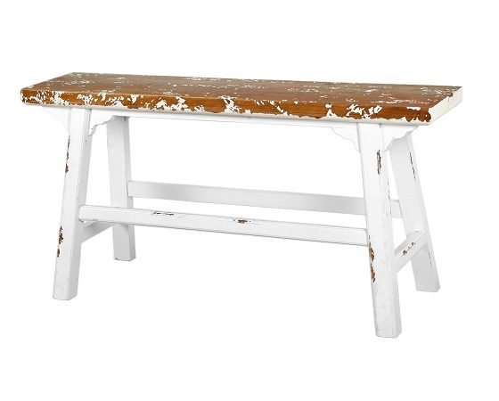 Low Wide White Rustic Bench by Originals
